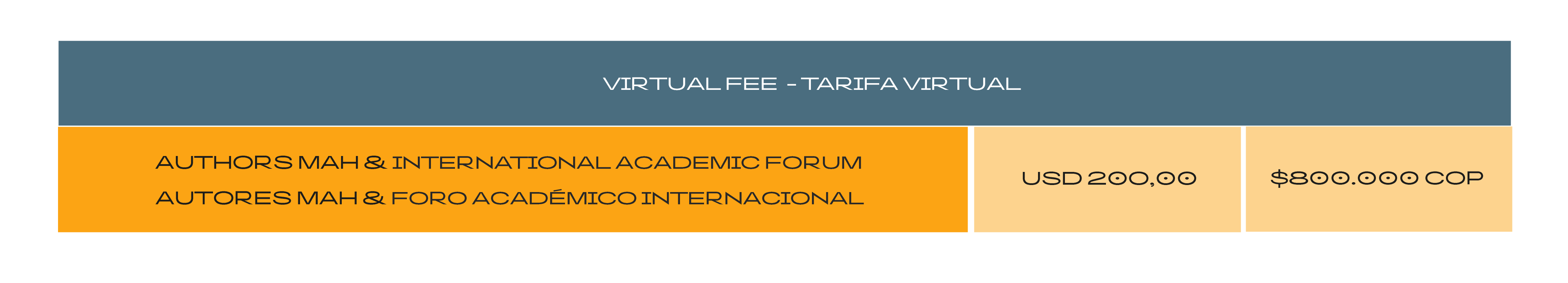 Los docentes de la Universidad de Caldas y los docentes de la Universidad Jorge Tadeo Lozano de Bogotá deben pagar una tarifa voluntaria de $150.000. Los docentes que tienen participación como ponentes o artistas en convocatoria, les aplica esta misma tarifa.